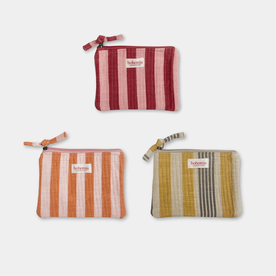 Keep make up, stationary or sewing supplies neat and tidy in this striped cotton zip pouch from Bohemia. A lovely gift for a teenage birthday or back to school occasion - get organised for Autumn the fun way.