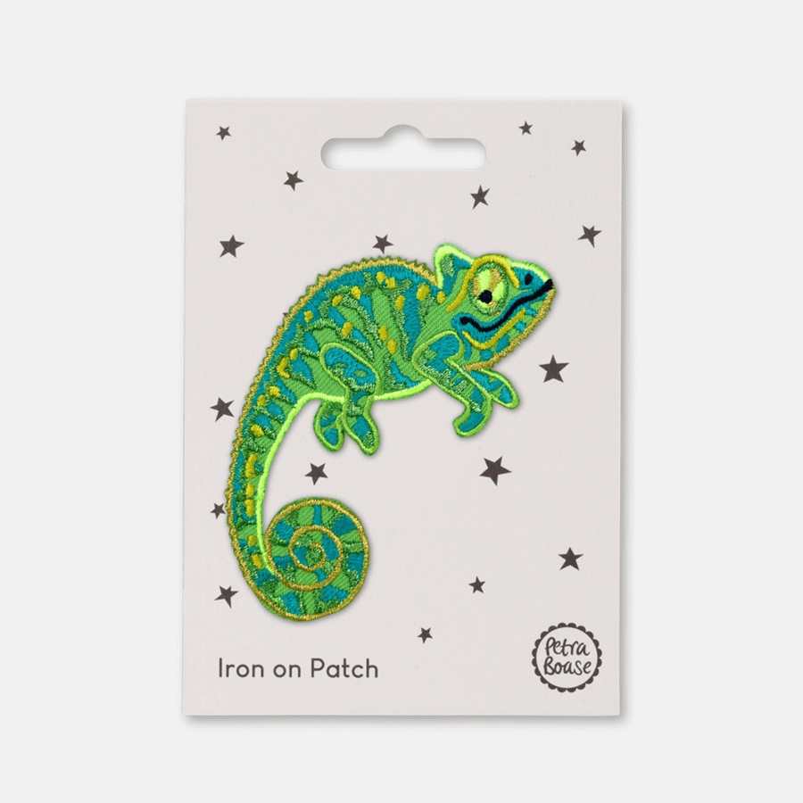 Go wild for this Chameleon Iron-on Patch from Petra Boase, a fun addition to your clothes, bags and accessories.