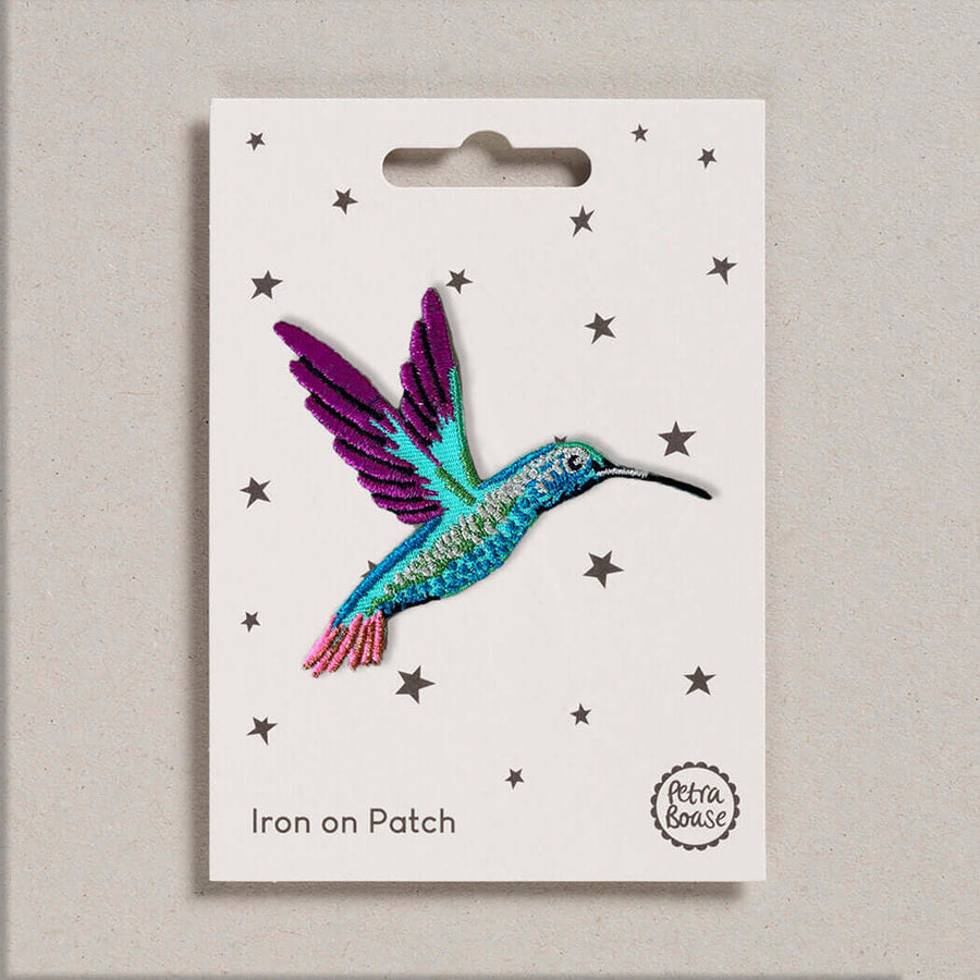 Add a pop of colour to your clothes and accessories with this beautiful hummingbird iron-on patch from Petra Boase.