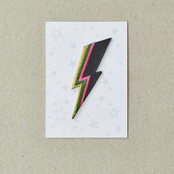 Add a bolt of lightning to your outfit with this Bowie-inspired iron on patch from Petra Boase.