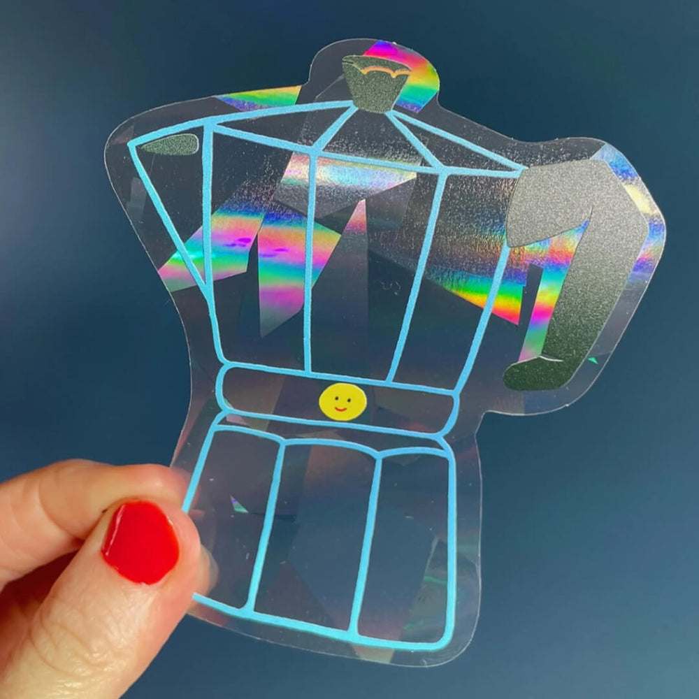 Capture some sunny magic in your rooms with this caffeine-inspired Coffee Pot Suncatcher Sticker by Naomi Wilkinson.