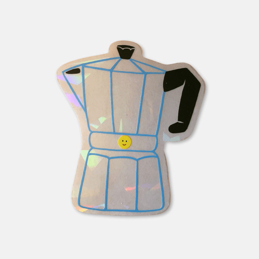 - Suncatcher sticker with a sweet smiley face coffee pot design