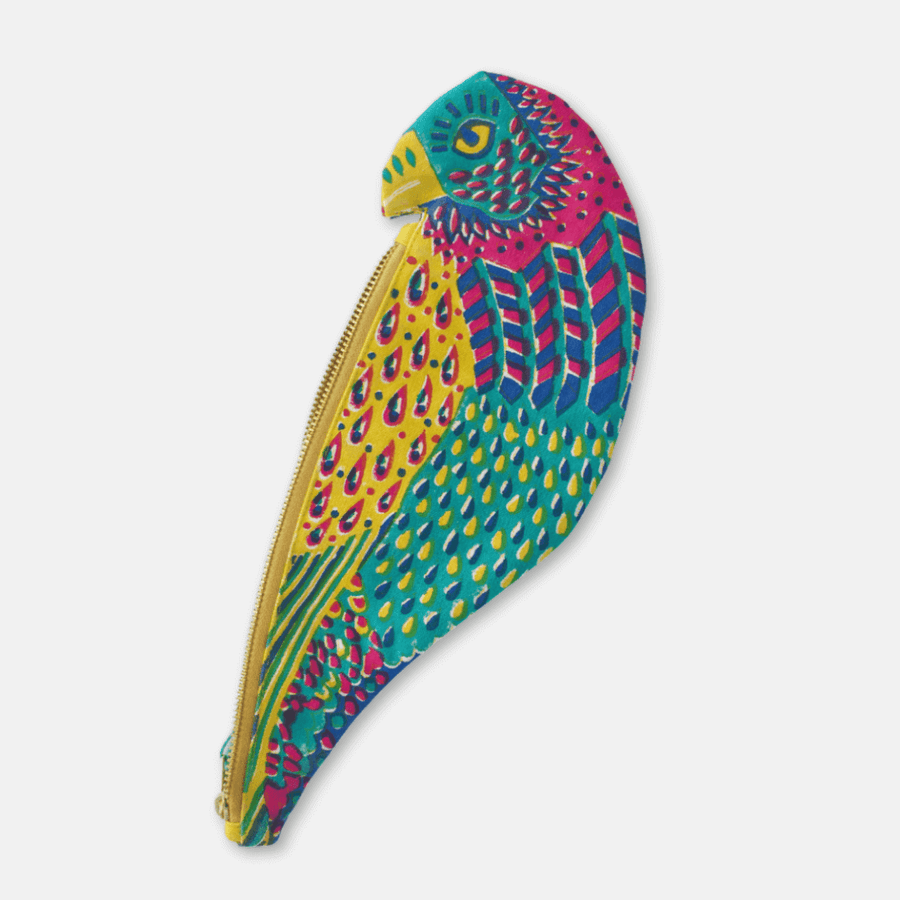 - 100% all-natural cotton fabric pouch in a vibrant parrot design