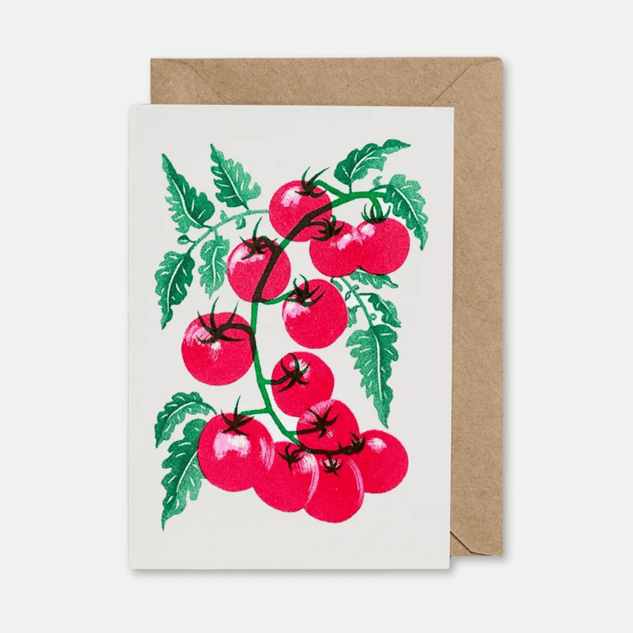 This gorgeously juicy Tomatoes Riso Greetings Card by Petra Boase is inspired by days spent in the garden and on the allotment. Featuring a beautiful illustration, this was risograph printed using eco soy inks. A great choice for birthdays, thank yous or just to say hello.