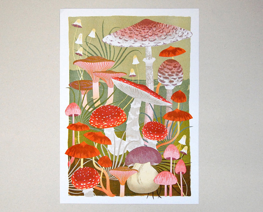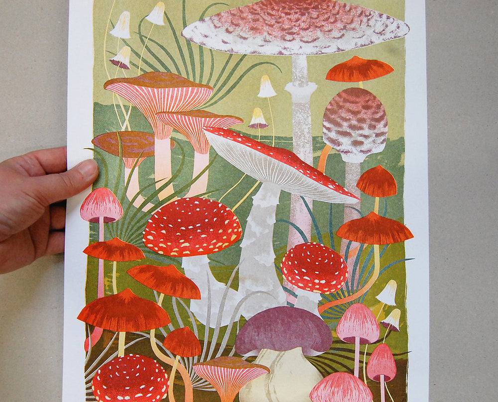 Celebrate the magical world of mushrooms with this beautiful risograph print by Printer Johnson.