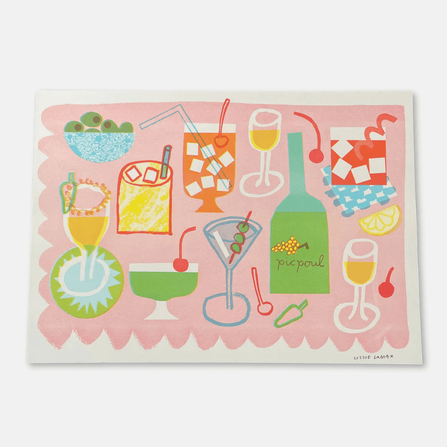 Add some playful fun to your home with this gorgeous Cocktails A3 Riso Print by Brighton based illustrator Lizzie Lomax.