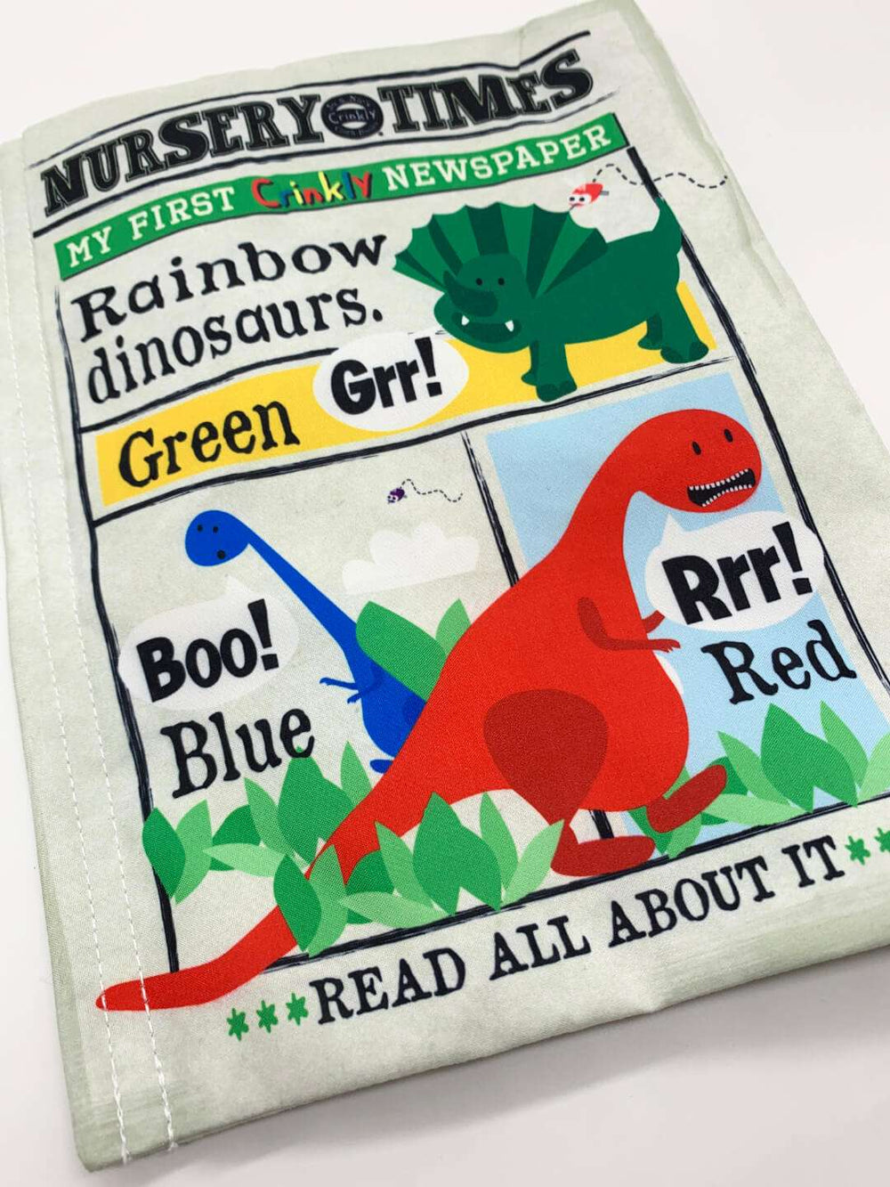 - A cloth book that has been cleverly created to look just like a little newspaper