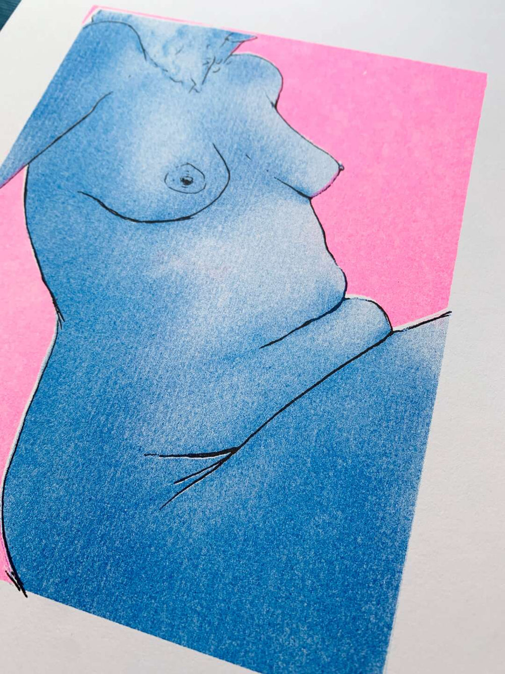 BAM Store + Space was thrilled to produce this beautiful print by Bethcub, the second in our series of risograph print collaborations with local artists. Bristol artist Beth's work explores the body, censorship and the female construct through a variety of mediums. This nude print was been created exclusively for BAM in a limited edition of 30.