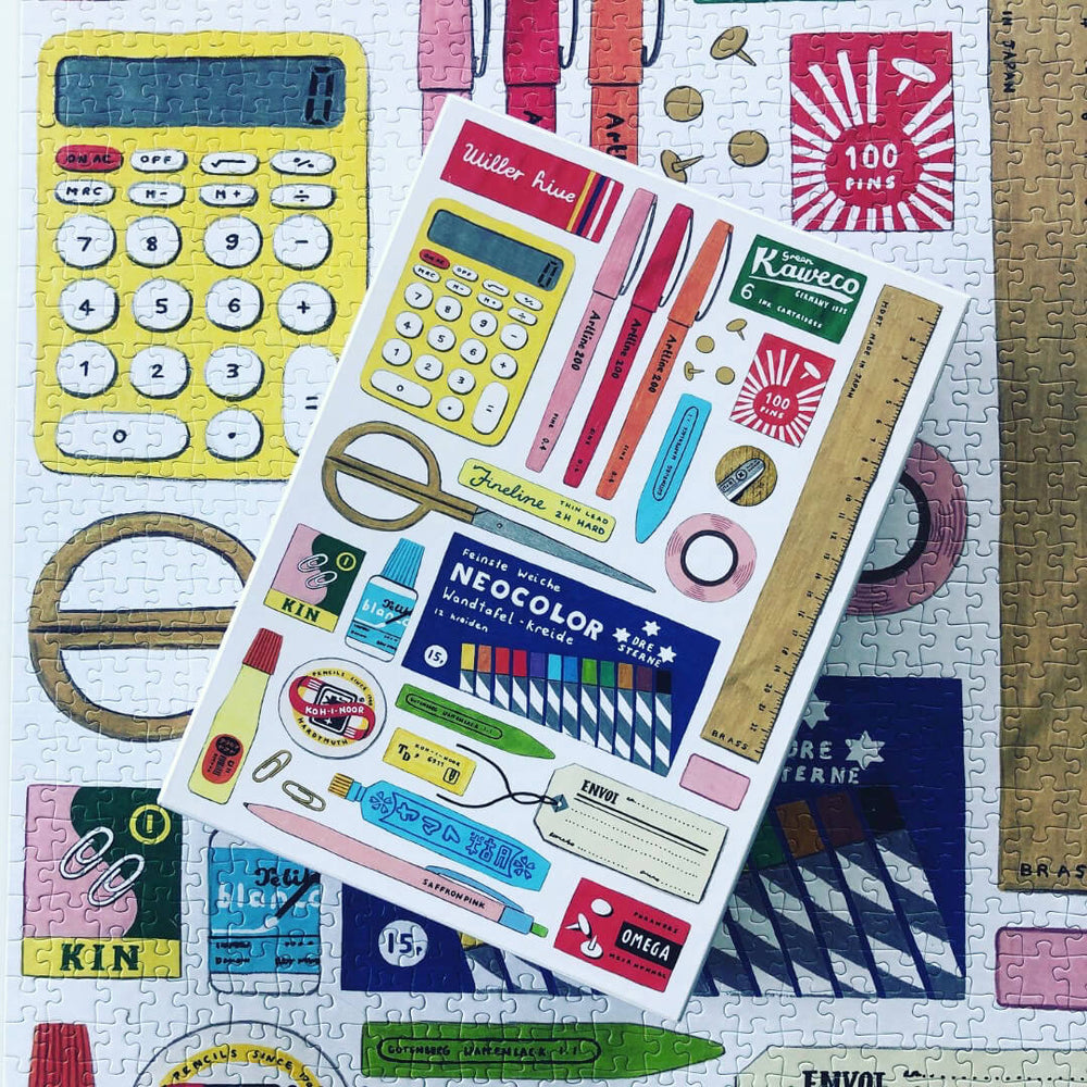 - 1000 piece jigsaw puzzle featuring a detailed illustration of stationery
