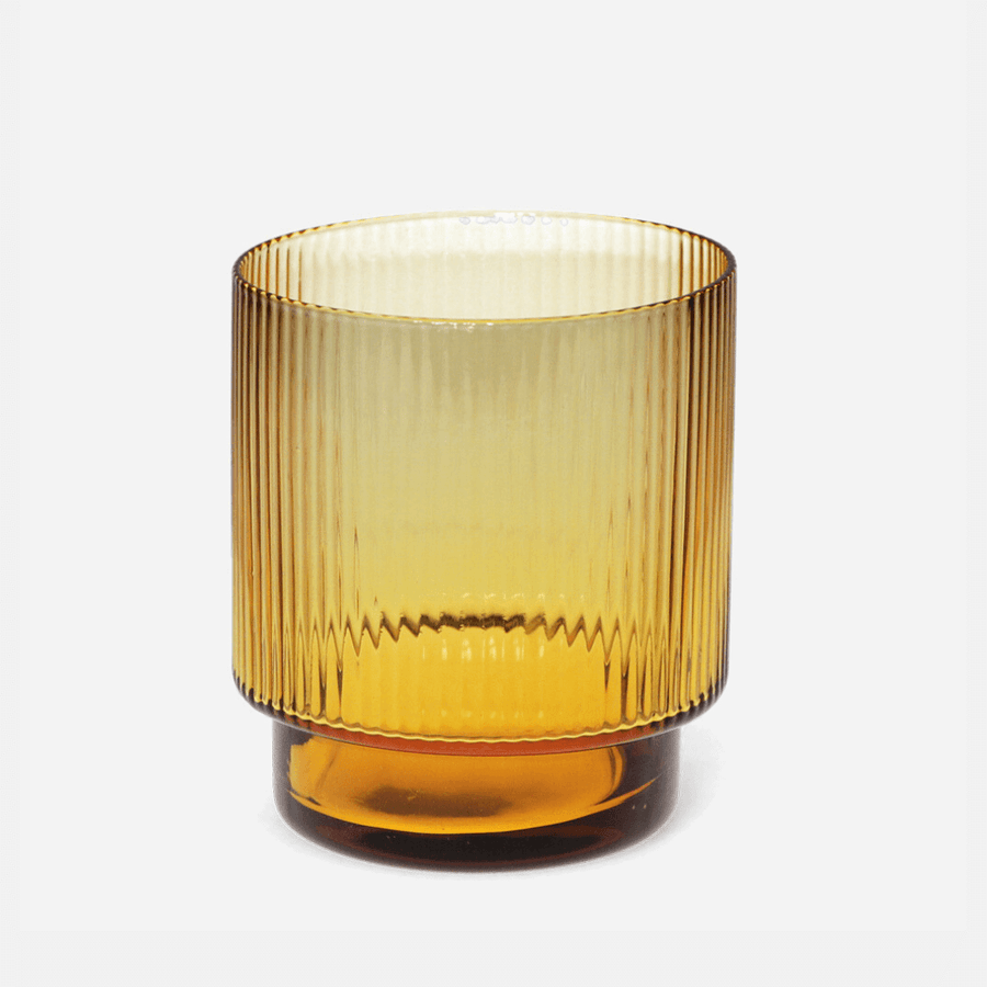 Stylish Ribbed Glass Tumblers with a retro mid-century aesthetic. Elegant and beautifully coloured, they're perfect for serving drinks with a touch of sophistication.