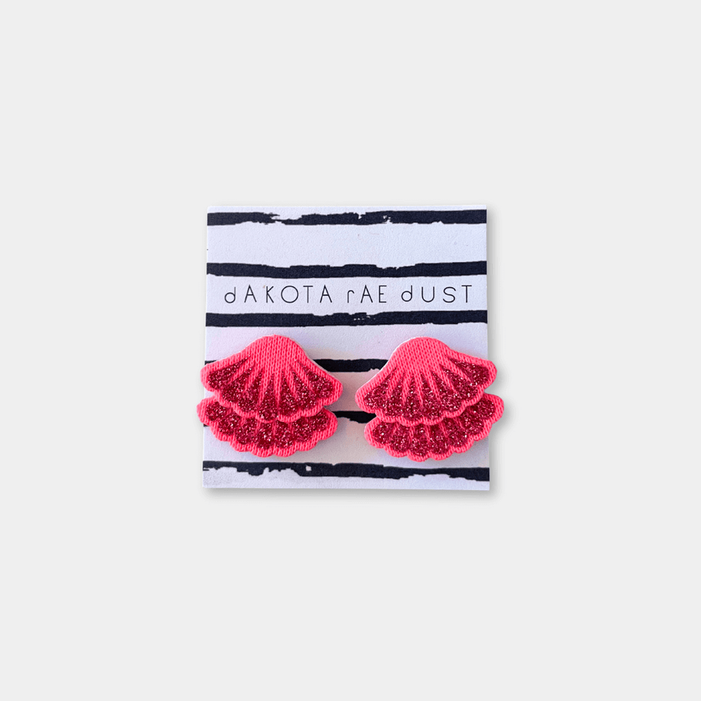 - Hand-stitched fabric and vinyl stud earrings with a tiered frill design