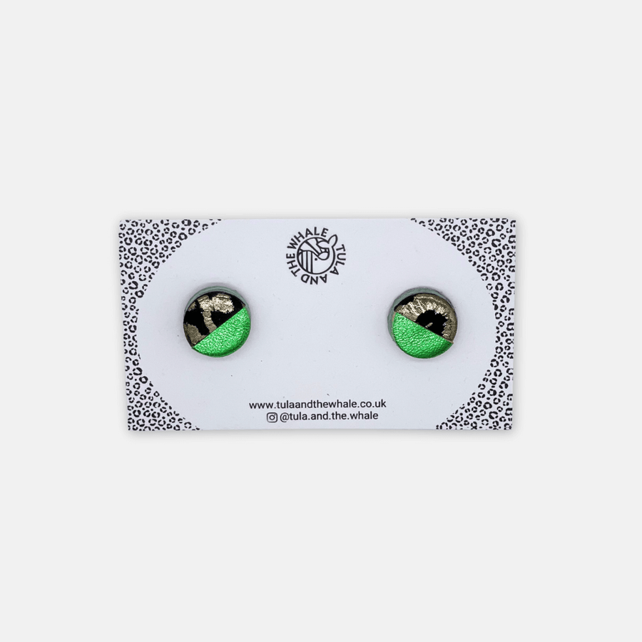 Sweet little studs made from recycled leathers, guaranteed to add a little sunshine to your day! Handmade in Devon by Tula and the Whale.