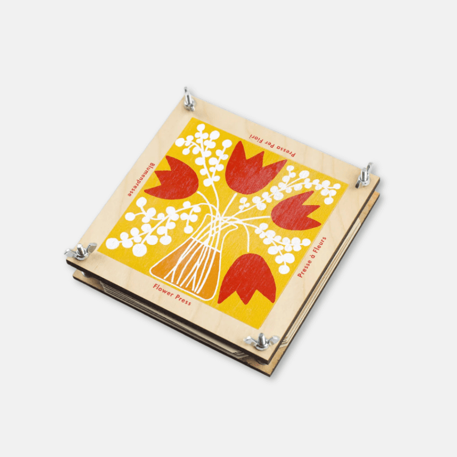 - Screen printed flower press from Studio Wald in a red and yellow tulip design