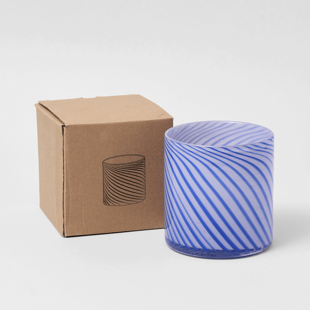 • Hand-blown glass plant pot with a blue spiral design
