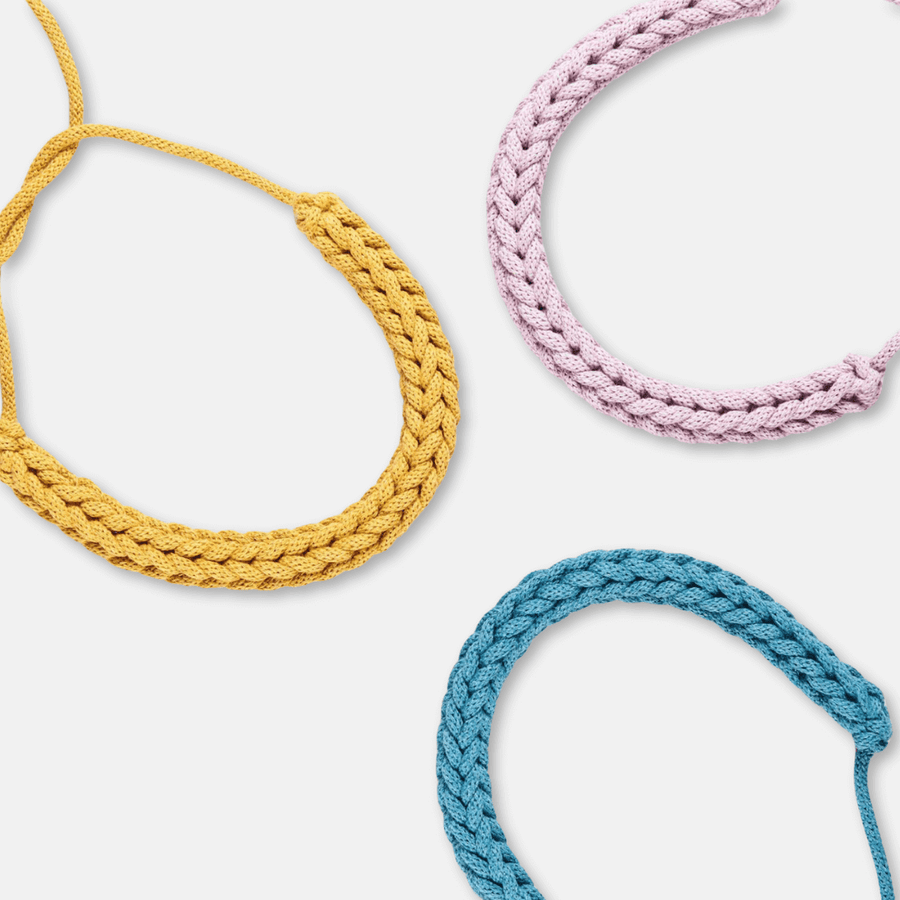 - Make 3 crochet necklaces using 100% recycled cotton cord
