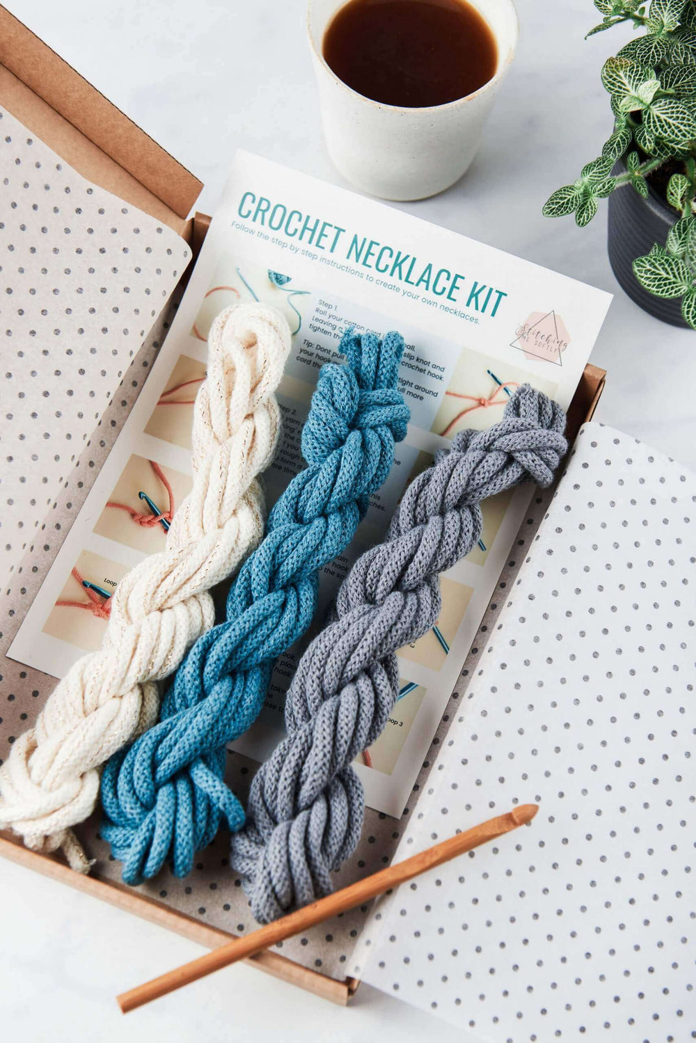 This stylish craft kit allows you to make your own crochet necklace in three different colours. Once you've got the hang on it you won't be able to stop! Perfect for beginners and yarn aficionados alike, everyone will enjoy making their own statement jewellery.