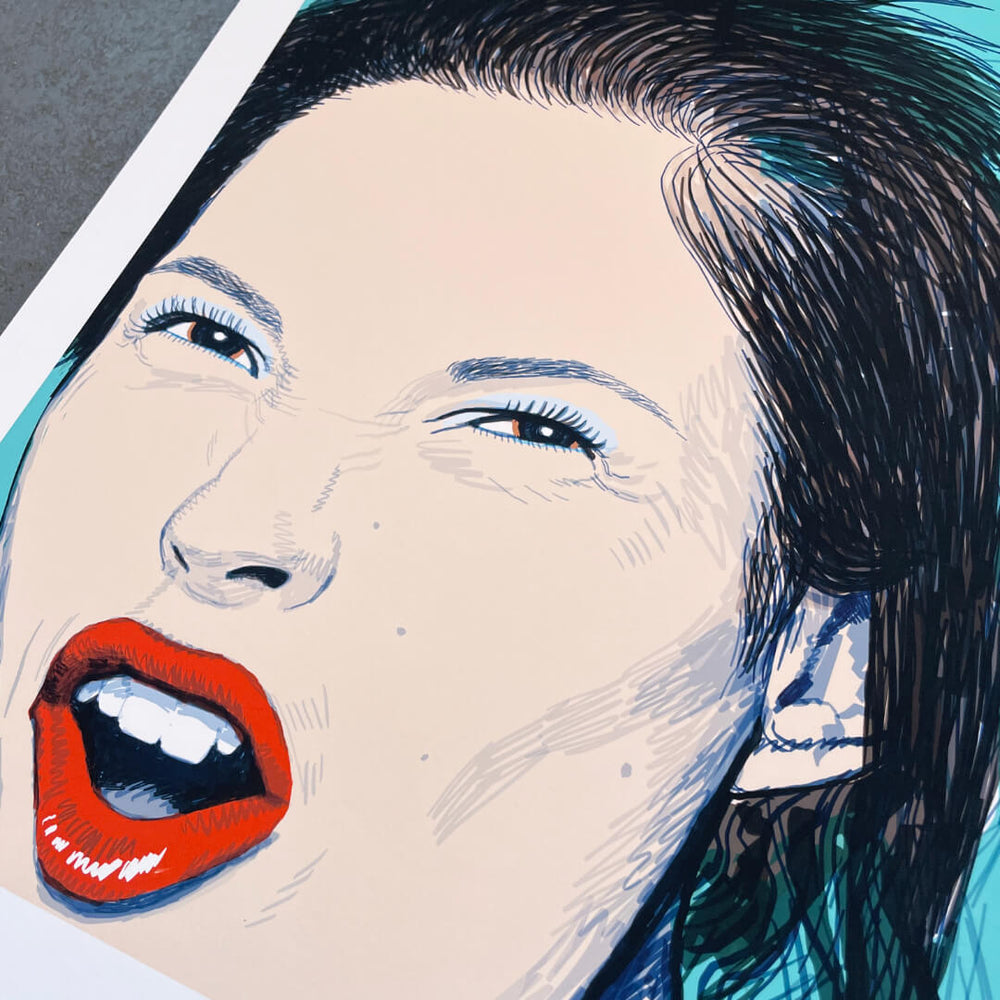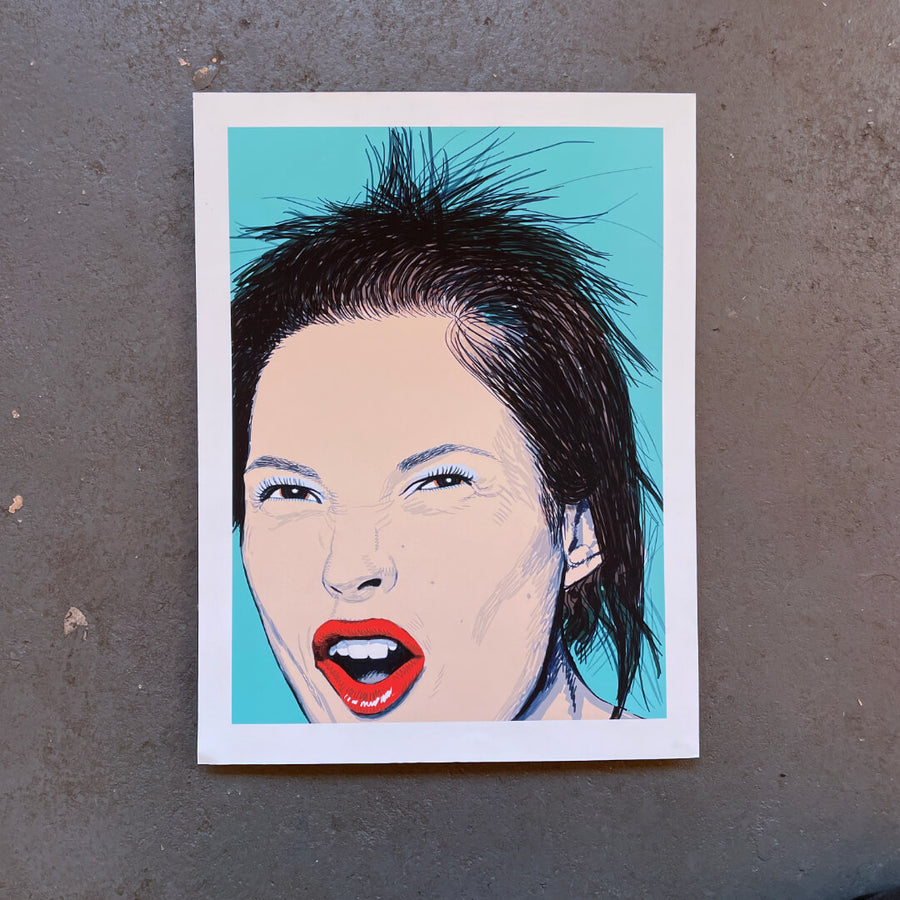 - Giclee art print of an original illustration featuring Kate Moss with a mouthy, punky expression