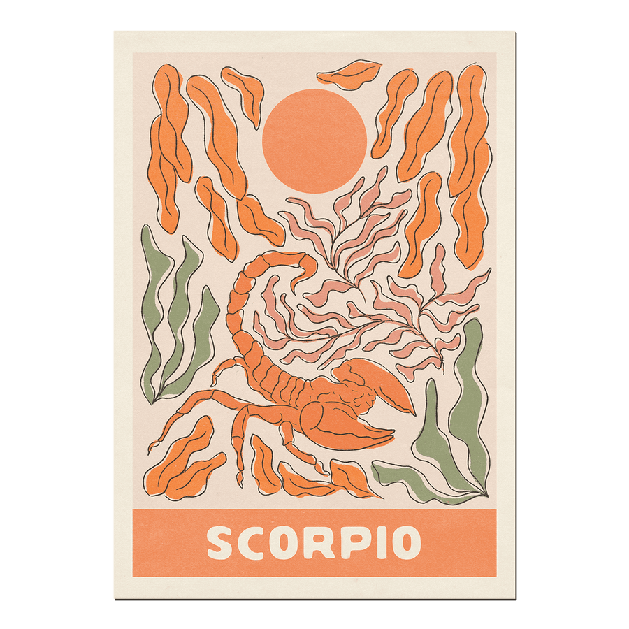 A clean and colourful print that celebrates the Scorpio sign of the zodiac.