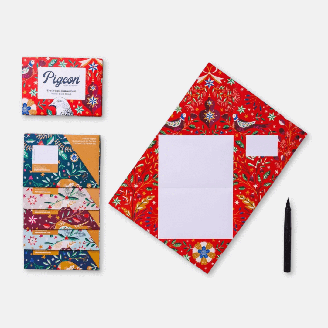- Pack of six Pigeon origami letters with different festive designs