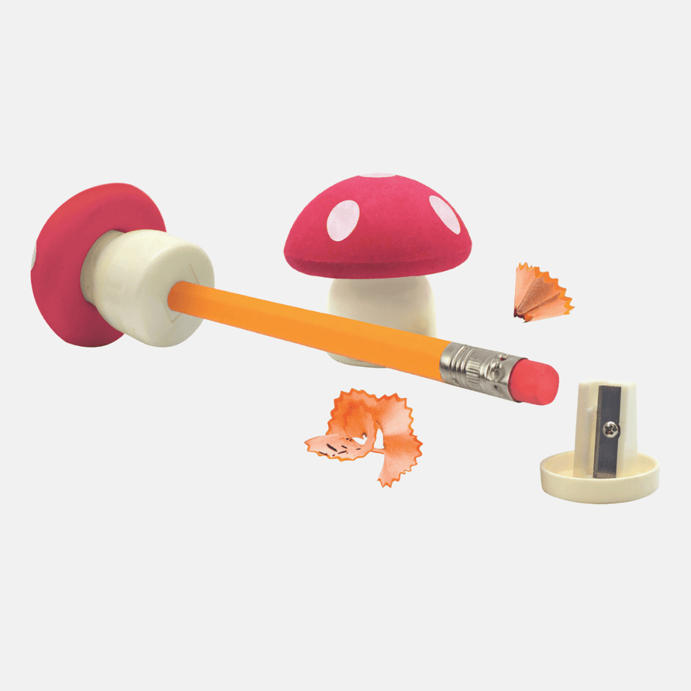 Keep this cute little mushroom on your desk or in your art supplies, ready for any time you need to sharpen your pencils or rub out your mistakes. A great small gift for stationery loving kids and teens.