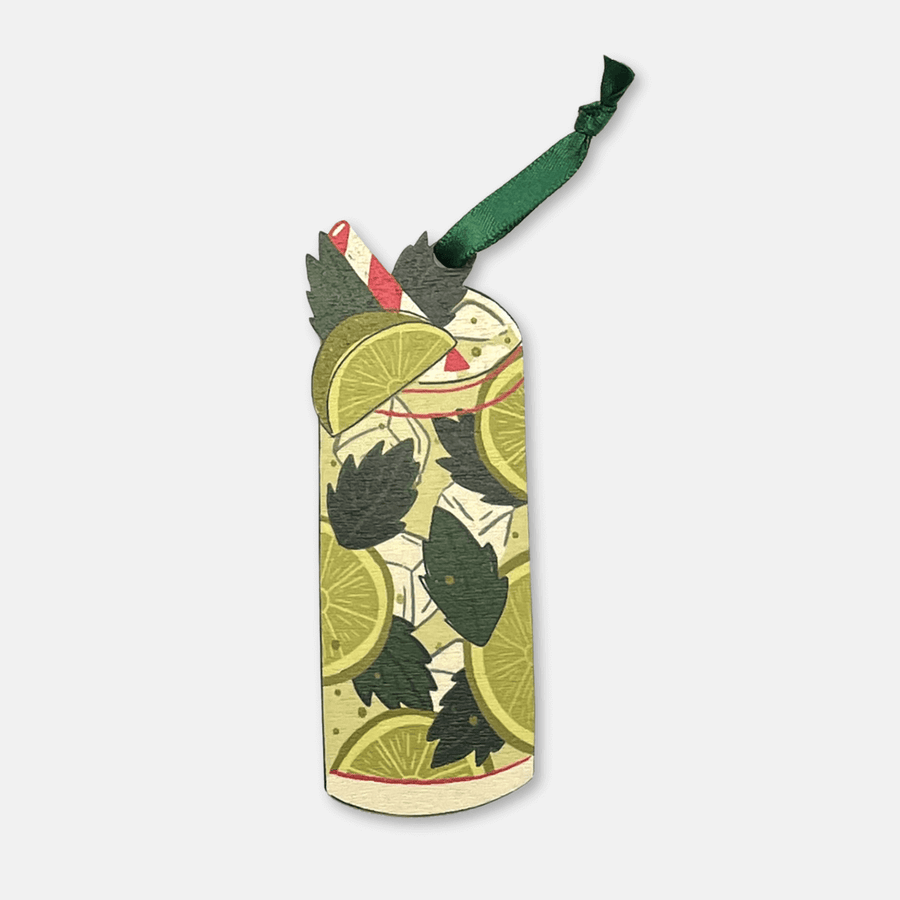- Wooden Christmas decoration with a minty, lime stuffed Mojito cocktail design