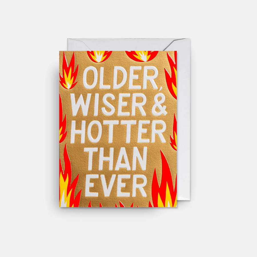 Let them know they're still smoking with this Older, Wiser, Hotter Mini Greetings Card by Bristol illustrator Ruby Taylor. With a bold design and gold shimmery inks, this card is one of our bestselling designs now available in a smaller size.