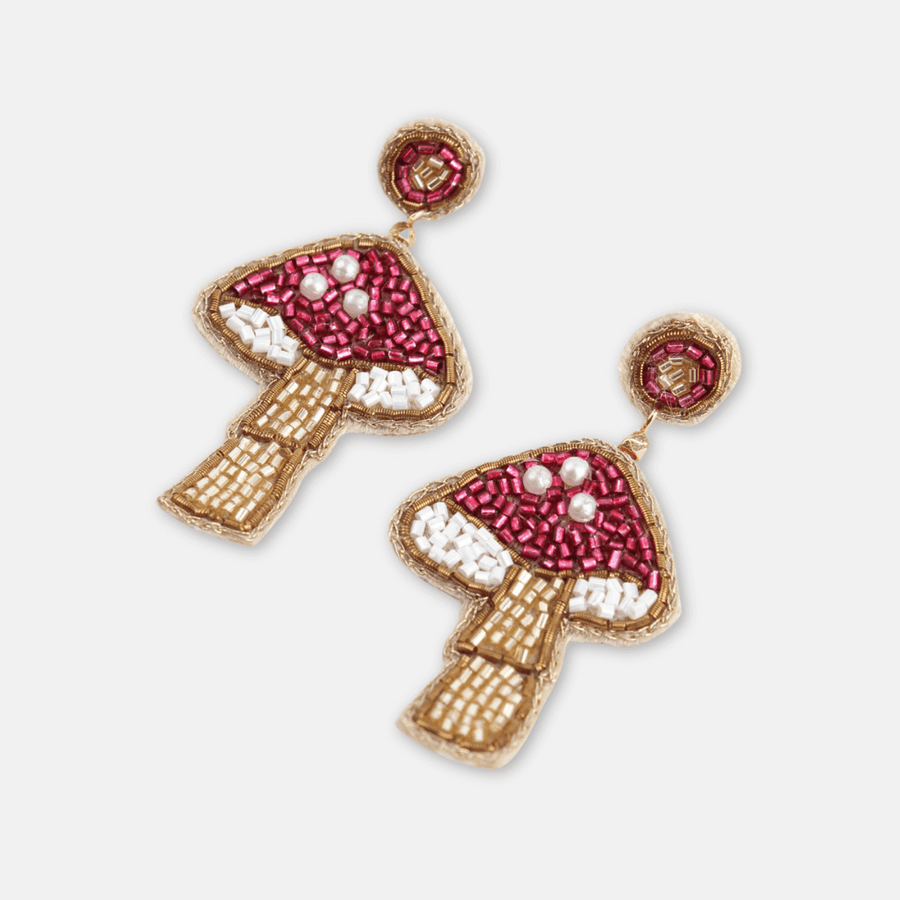 Embrace your inner forest imp with these adorable Pink Mushroom Beaded Earrings from My Doris.